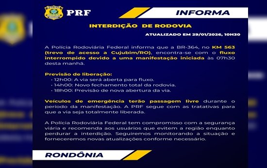29/01/2026 : EM RONDÔNIA: Justiça Federal suspende cobrança de pedágio na BR–364