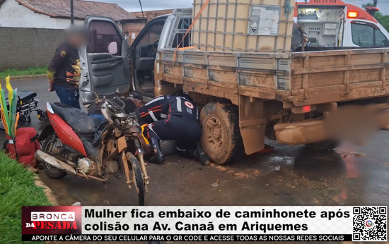 02/02/2026 : Mulher fica embaixo de caminhonete após colisão na Av. Canaã em Ariquemes – Vídeo