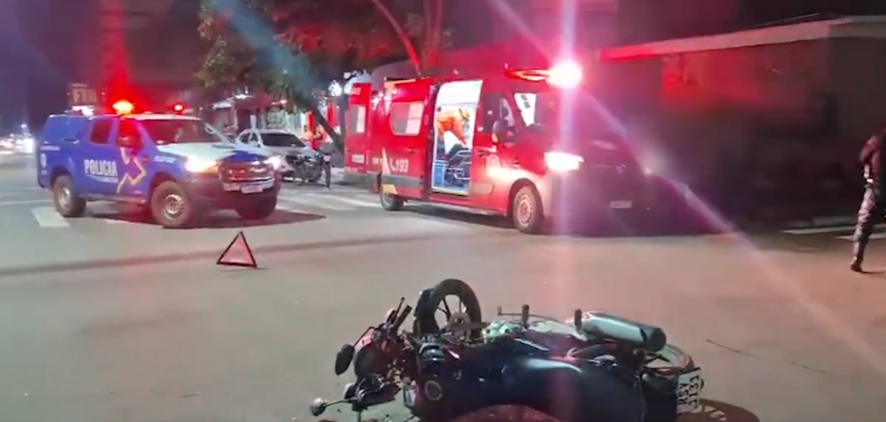 Motociclista fica ferido em acidente no cruzamento das Av. Pinheiro Machado e Av. Campos Sales em Porto Velho - Vídeo