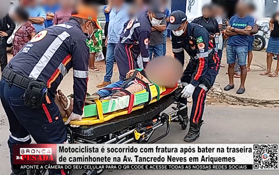 09/02/2026 : Rapaz sofre fratura grave após colisão entre moto e caminhonete na BR 364 em Ariquemes – Vídeo