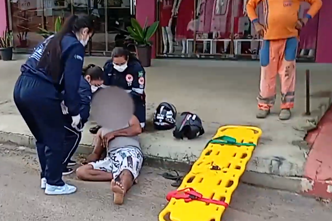 13/02/2026 : Motociclista é socorrido pelo SAMU após cair na rotatória das avenidas Tancredo Neves e Guaporé, em Ariquemes – Vídeo