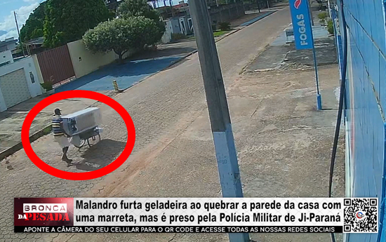 Malandro furta geladeira ao quebrar a parede da casa com uma marreta mas é preso pela PM de Ji-Paraná - Vídeo