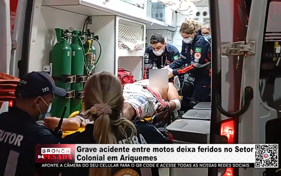 08/04/2026 : Nova BR–364 e SAMU socorrem três vítimas de colisão entre moto e carro no trevo da entrada de Ariquemes – Vídeo